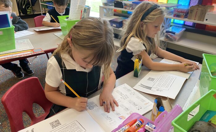 Kindergarten engages children in literacy through oral language, literature appreciation, and early reading and writing skills. Through guided practice, possible field trips, literature, art, music, and stewardship activities, Kindergarten children begin to acquire the socialization skills necessary to function as living examples of Christ-like behavior, both as individuals and as part of a group whether it be the family, school, parish, and/or broader community. Through guided practice, students begin to develop an understanding of important math and scientific concepts, processes and ideas.